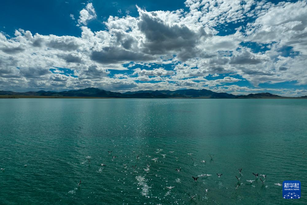 俯瞰别若则错(无人机照片,8月25日摄)。新华社发(旦增努布 摄)