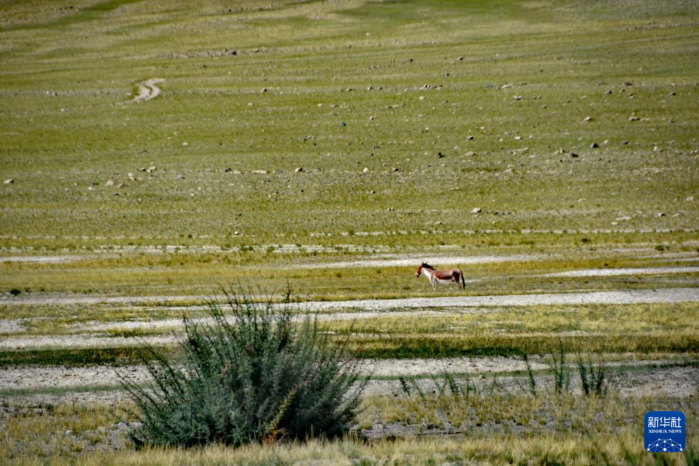 别若则错周边的藏野驴(8月25日摄)。新华社记者 刘文博 摄