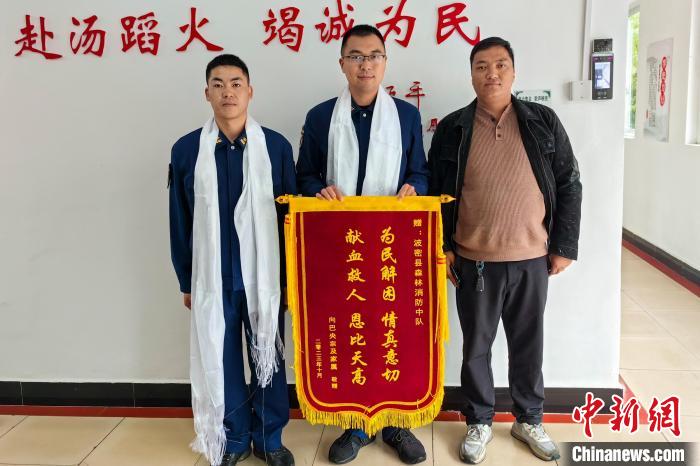 10月9日,为了感谢消防救援人员的紧急援助,被救助的孕妇家属拿着一面“为民解困情真意切,献血救人恩比天高”字样的锦旗送到波密县森林消防中队。家属不停地说着感谢,并说因为输血及时,孕妇已经转危为安了。