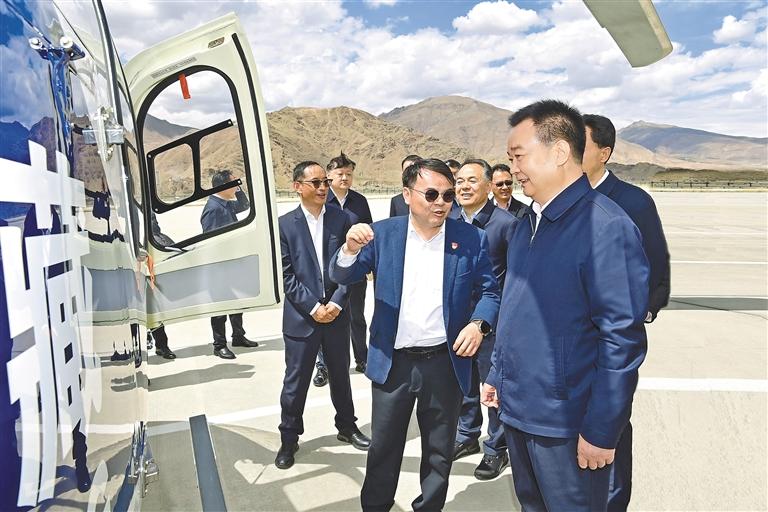5月23日下午,自治区党委书记王君正前往位于拉萨市达孜区的西藏航空应急救援基地,调研西藏通用航空产业发展、综合应急救援体系建设等情况。这是调研现场。记者 旦增西旦 摄