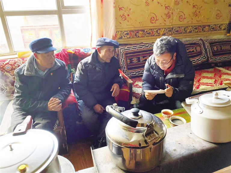 旦增顿珠作为队长和第一书记,一边努力克服高反给自身带来的不适,一边帮助队员调整心态、适应环境,并主动挑起了照顾大家的重担——到草场上捡牛粪取暖,到小河沟破冰挑水,研究如何用高压锅做饭。他的付出,队员们看在眼里、记在心里,在旦增顿珠的带领和鼓舞下,队员们很快适应了高原的生存环境,随即投入到走访和调研工作中。