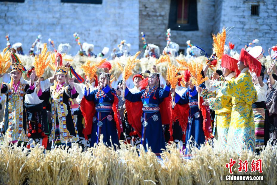 9月22日,2024年西藏“中国农民丰收节”庆祝活动在山南市琼结县拉玉乡强吉村举行。活动以“学用‘千万工程’礼赞丰收中国”为主题,由西藏各地(市)民间演出队为大家献上一场具有地域特色、体现农牧民丰收喜悦的歌舞盛宴。图为演出现场。