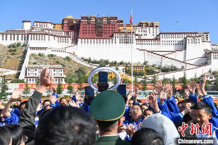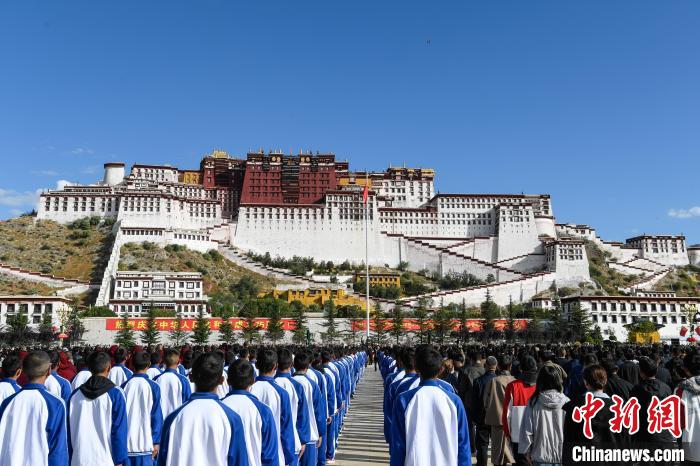 10月1日上午,西藏自治区在布达拉宫广场举行“升国旗、唱国歌”仪式,庆祝中华人民共和国成立75周年。中新社记者 贡嘎来松 摄