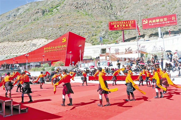 昌都市芒康县朱巴龙乡举行“‘礼赞伟大新中国 幸福凝聚新时代’主题暨戏曲进乡村”文艺汇演活动。 记者 董国峰 摄