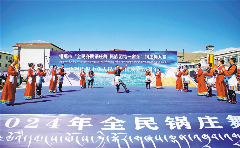 错那市“全民齐跳锅庄舞 民族团结一家亲”锅庄舞大赛现场。记者 旦增兰泽 摄