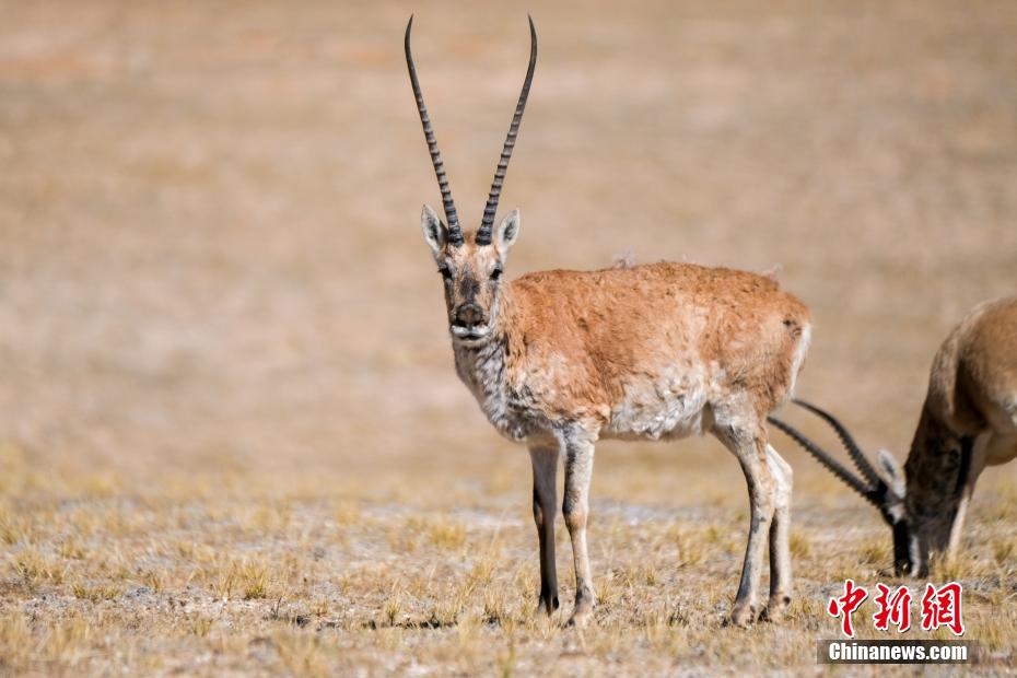 图为10月3日,西藏羌塘草原上的两只藏羚羊。中新社记者 江飞波 摄