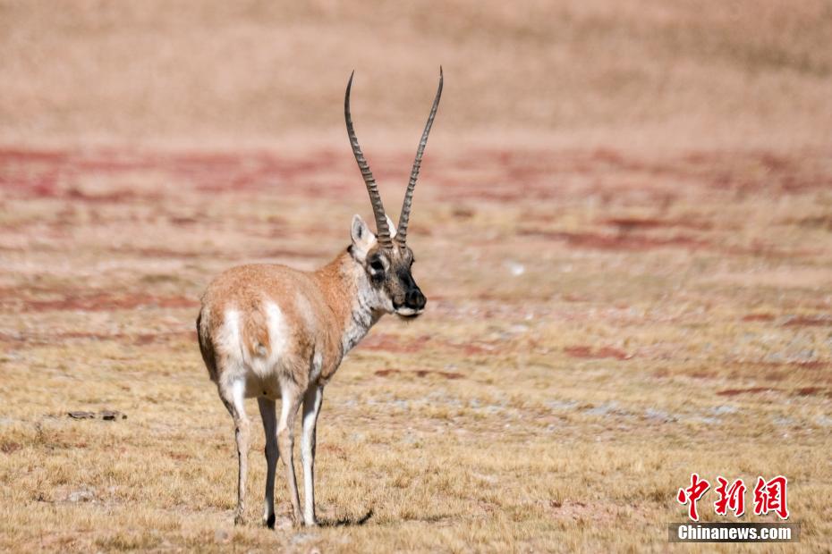 图为10月3日,西藏那曲双湖县的草原上,一只藏羚羊回望“镜头”。中新社记者 江飞波 摄