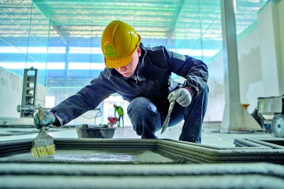 西藏拉萨市蔡村一家3D打印企业工人在处理打印产品。新华社发