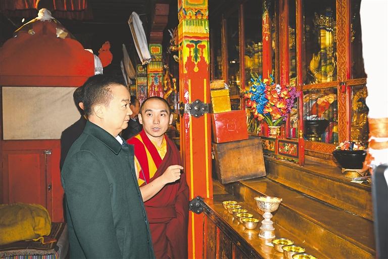近日,自治区党委书记王君正在日喀则市调研宗教工作。这是王君正来到扎西吉培寺开展调研。记者 旦增西旦 摄