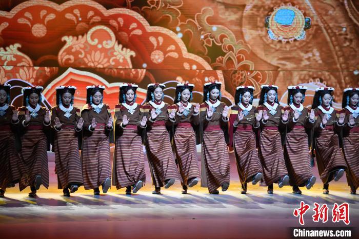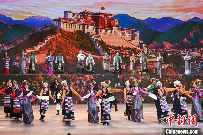 5月17日晚,2025年“雪域古城·圣地拉萨”文化旅游节“心约拉萨”专场文艺演出在西藏大剧院举行。演出在《吉祥颂》中拉开序幕,随后,次旦朗杰、次仁卓嘎等带来歌曲《心约拉萨》。京剧与藏戏碰撞的《古韵新话赞拉萨》将现场气氛推向高潮。当晚,《哎玛嚯》《吉曲河畔》等节目轮番上演,为观众带来了一场沉浸式视听盛宴 ,让大家在歌舞诗画中感受拉萨的人文底蕴与时代活力。 中新社记者 贡嘎来松 摄