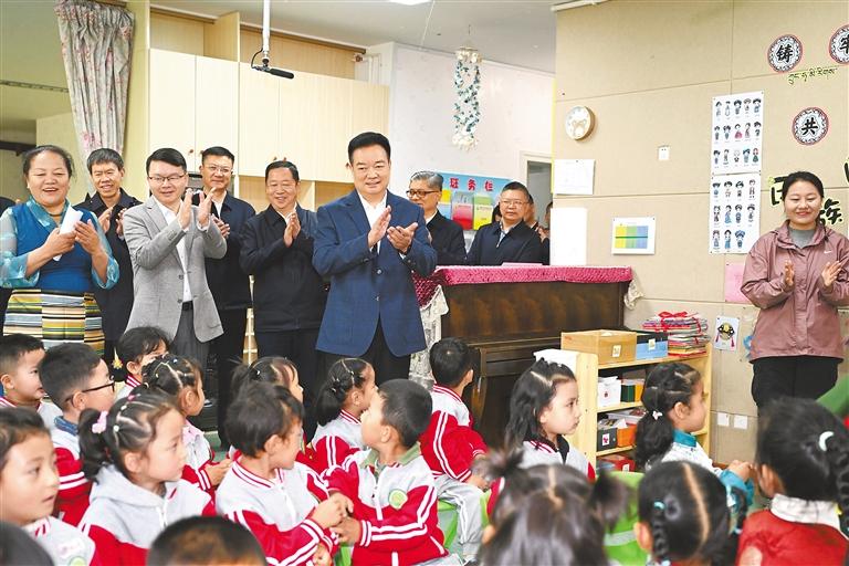 “六一”国际儿童节到来之际,自治区党委书记王君正在拉萨调研少年儿童教育教学和少先队工作。这是王君正来到自治区实验幼儿园,了解特色课程开展情况。本报记者 旦增西旦 摄