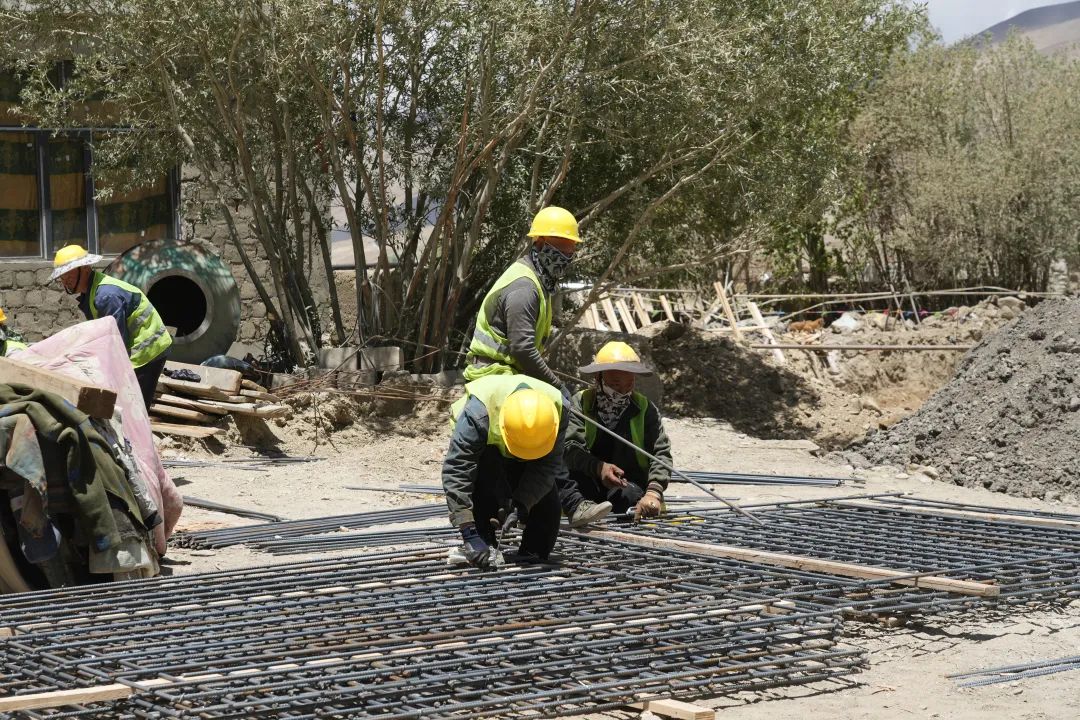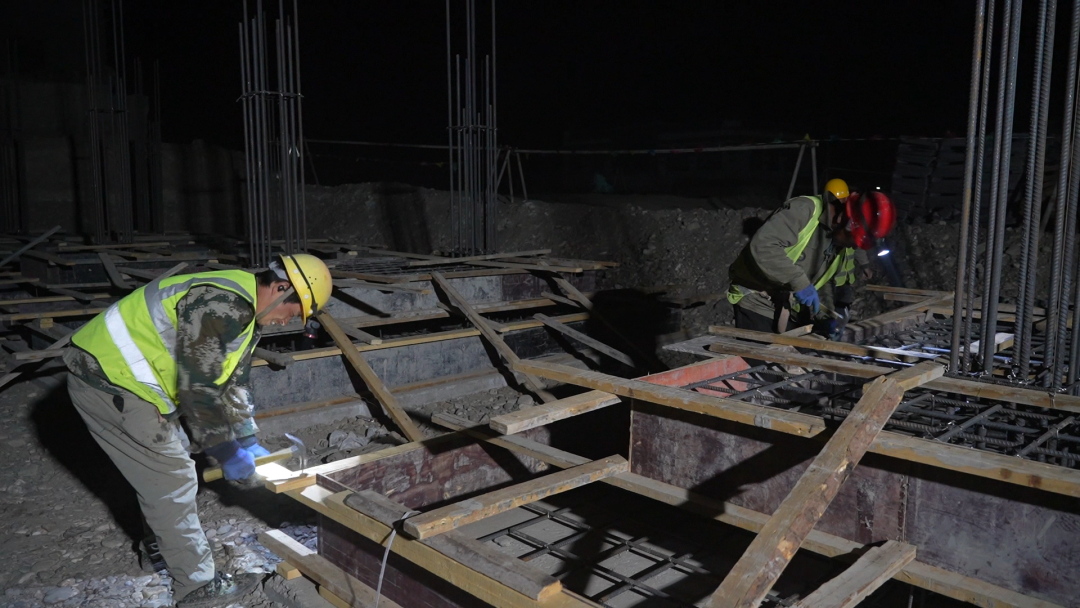 当夜幕笼罩村庄,大风呼啸,旺加仍未归家。他戴上安全帽,出现在灯火通明的工地。机械轰鸣,人声交织。旺加仔细巡视基坑、钢筋,履行监督之责;顺手递工具,用带着藏语腔调的汉语讲着接地气的笑话驱散疲惫。