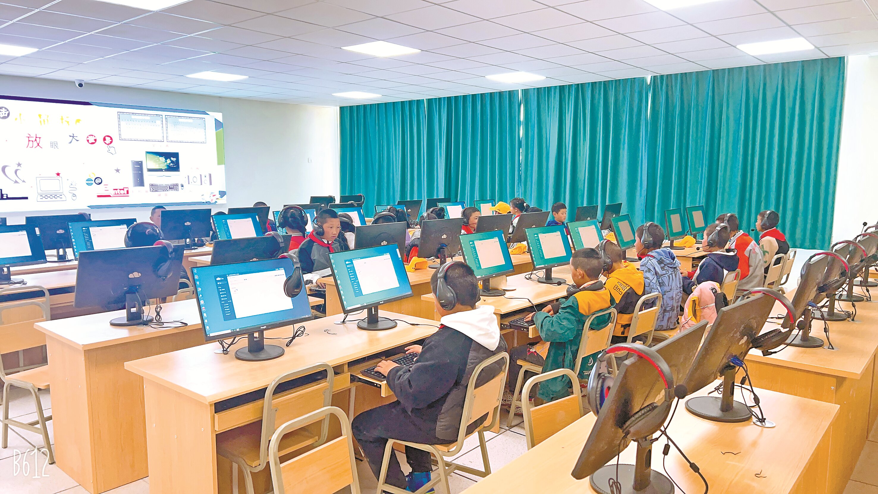 2024年,那曲市色尼区第二小学学生在学习计算机知识。那曲市色尼区委宣传部供图