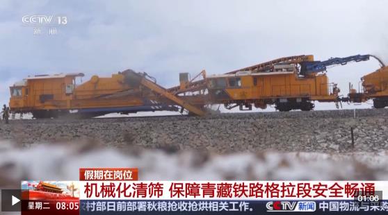 国庆中秋假期是团圆时刻,但也有不少人依旧坚守岗位,守护着千家万户的团圆。在平均海拔4500米的青藏铁路格尔木至拉萨段上,西宁工务机械段的职工们假日不停工,加紧推进机械化清筛施工,保障假期高原铁路的安全畅通。