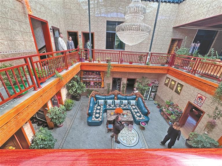 走进次仁措姆家院子里,她正在自家果园采摘刚成熟的石榴,房前的小院里整齐摆放着各种盆栽。“以前房前屋后杂物乱堆,经过整治,空出的地方种上了蔬果,现在家家户户都有小果园,多亏了村里的整治行动。”次仁措姆领着我们到客厅,指着墙上的“美丽庭院”流动红旗笑着说:“这面旗是上个月评上的,现在村里都比着搞卫生,谁也不想落后。”