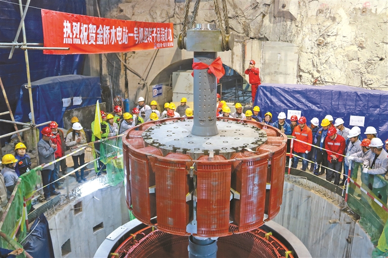 那曲易贡藏布金桥水电站一号机组转子吊装现场(资料图片)。图片由那曲市能源局提供