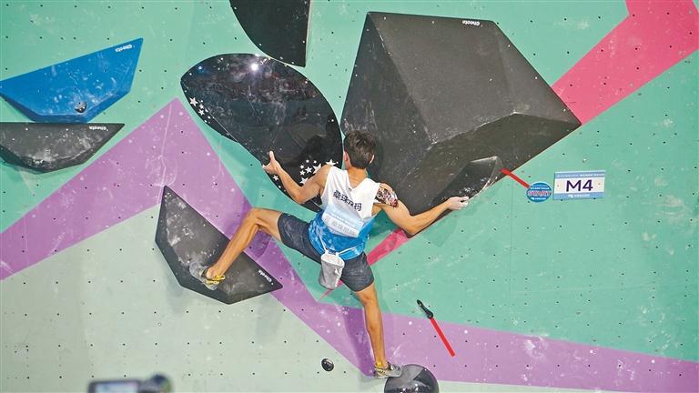 11月15日下午,第十五届全国运动会攀岩比赛攀石决赛落下帷幕。西藏运动员桑珠尼玛获得男子组第7名。