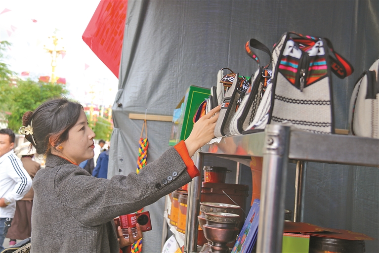 图为曲松县农产品展销活动中,具有当地特色的手工编织产品深受青睐。记者 丹增平措 摄