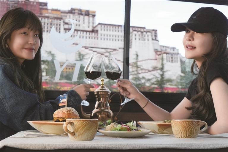 为了让游客和市民能够品尝到最地道的拉萨美食,观光巴士运营方与拉萨多家知名餐厅展开了深度合作。乘车期间,游客可以围炉煮茶,感受那份温馨与惬意,品尝果茶的清甜、干果的香脆与甜品的绵密交织在口中的美妙滋味;还可以喝上一杯用高原牦牛奶与醇厚红茶小火慢熬而成的甜茶,搭配上融合藏式元素的精致茶点,仿佛瞬间穿越到了拉萨当地人的生活中,沉浸式体验他们的悠闲午后时光。