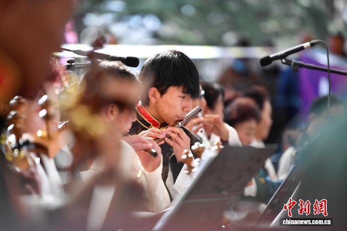 图为群众音乐会,民乐合奏《我的家乡好》精彩上演。中新社记者 贡嘎来松 摄