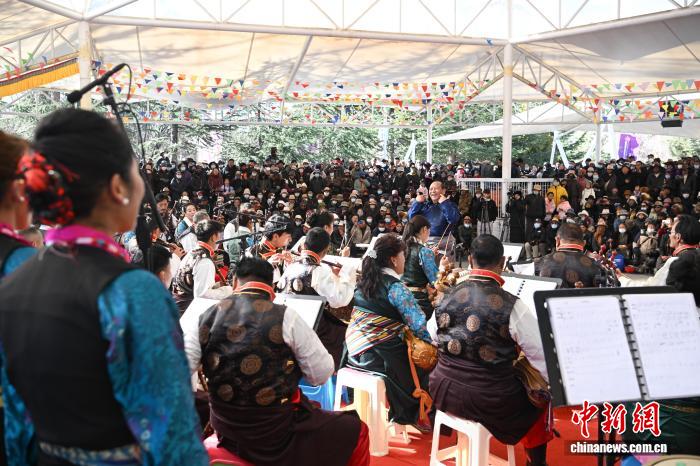 12月20日,为热烈庆祝西藏自治区成立60周年,由西藏自治区文化和旅游厅主办的格桑花演出季——迎新年“我们的节日 群星荟萃”群众音乐会在拉萨宗角禄康公园精彩上演。音乐会节目丰富多样,涵盖民乐合奏、少儿藏戏、独唱重唱等多种形式。传统韵味与时代气息交融,各族群众以欢歌赞颂发展巨变,共迎美好新年。