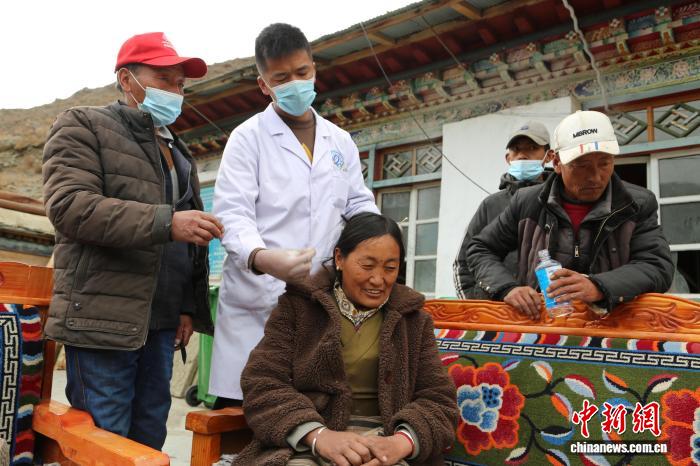 资料图为藏医医师吾金为村民做传统藏医散针疗法。伦珠泽仁 摄