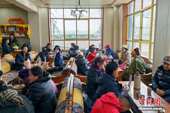 1月2日,拉萨市墨竹工卡县德仲温泉附近的茶馆里人声鼎沸。中新社记者 江飞波 摄