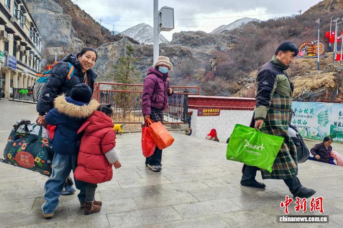 1月2日傍晚,陆续有民众提着大包小包到达拉萨市墨竹工卡县德仲温泉,准备在此享受冬日的温泉时光。中新社记者 江飞波 摄