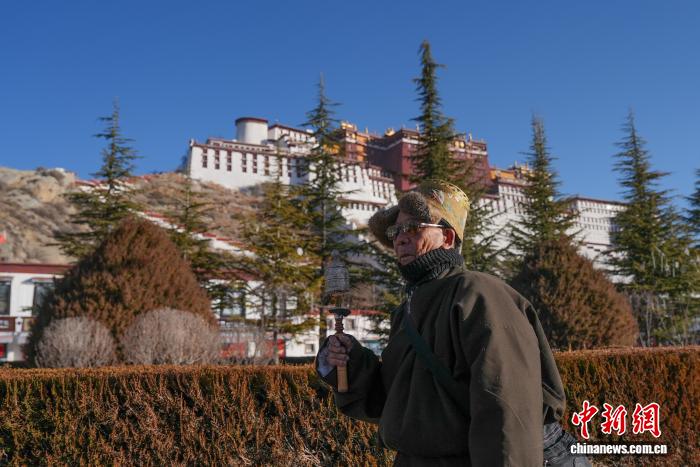 1月14日,雪域高原进入农闲季,西藏及各地藏传佛教信众齐聚拉萨,围绕布达拉宫、大昭寺等地排起长龙,转经朝拜、虔诚礼佛,为众生祈福,祈求风调雨顺。图为信众围绕布达拉宫转经。贡确 摄