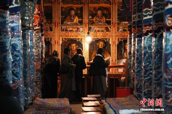 2月25日,藏历新年期间,西藏拉萨哲蚌寺迎来大批信众与游客。哲蚌寺始建于1416年,为藏传佛教格鲁派六大寺院之一,历史文化底蕴深厚,是重要的宗教文化场所。当日,不少信众和游客前来礼佛游览,感受寺院独特的人文氛围与宗教文化气息。图为哲蚌寺主供佛强巴佛。贡确 摄