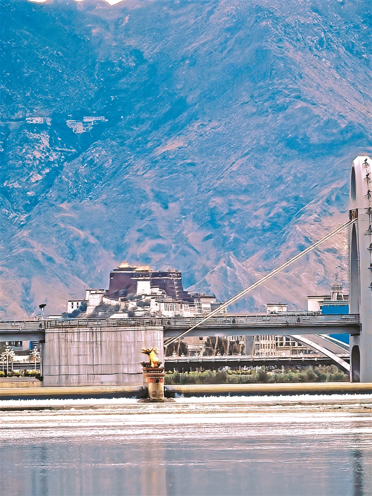 图为拉萨河特大桥旁遥望布达拉宫。