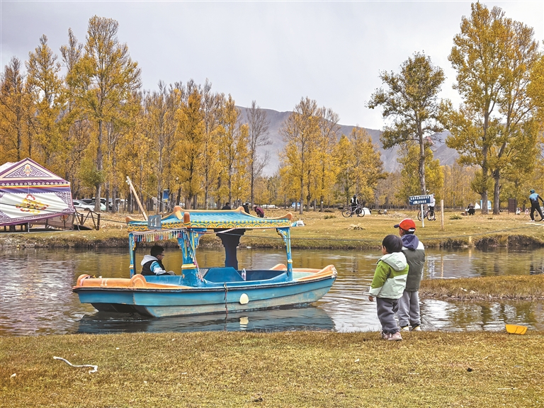 林周的神秘树林与河畔草地,是拉萨人安放心灵的自然秘境。色彩鲜亮的游船静静停泊在水边,如同绽放在河面的格桑花,开阔的草地与葱郁的林木相拥,阳光毫无保留地洒落在每一寸土地上,勾勒出原生态的自然之美。这里远离城市的喧嚣,空气清新,景致悠然,每逢闲暇时节,便有市民驱车前来,在山水间卸下疲惫,在自然中感受惬意,让城市与自然的联结愈发紧密,也让平凡生活多了一份诗意与自在。