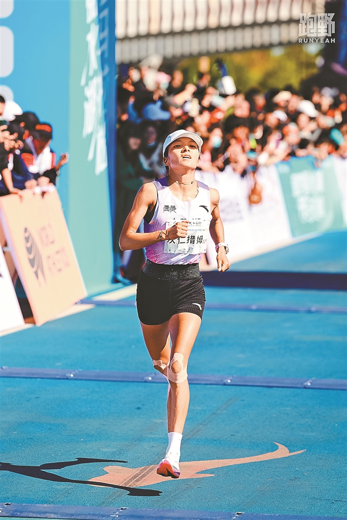次仁措姆在2024年全国马拉松锦标赛(第二站)获得冠军。(图片由受访者次仁措姆提供)