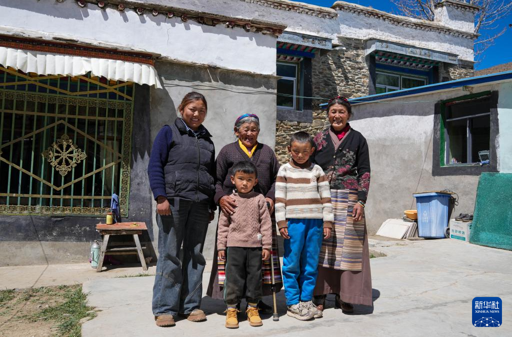 次仁桑姆和家人在宗卡村家中合影(3月26日摄)。新华社记者 晋美多吉 摄