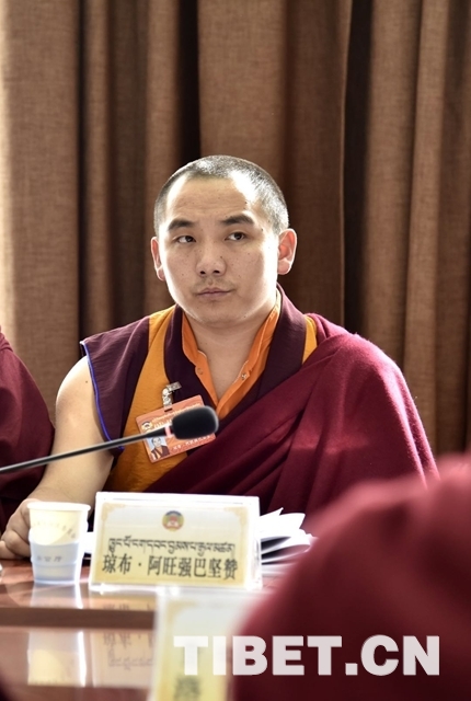 中国西藏网讯 1月9日,身着绛红色僧袍、提着藏蓝色公文包,28岁的政协委员琼布活佛提前来到会场,不时与相熟的人互致问候。