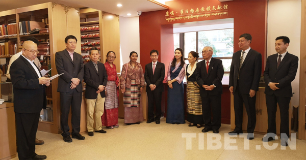 中国西藏网讯 5月25日,“康噶·崔臣格桑教授文献馆”开馆仪式在中国藏学研究中心举行。旅日藏胞、著名藏学家、日本大谷大学终身荣誉教授、日本成田山佛教研究所研究员、中国藏学研究中心特邀研究员康噶·崔臣格桑(白馆戒云)及其亲属应邀参加仪式。