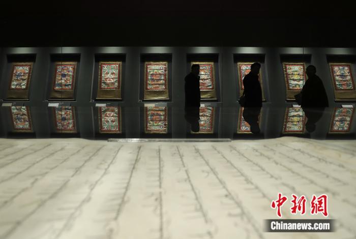 亮相此次展览的“四世班禅像”唐卡来自扎什伦布寺,是新勉唐画派创始人曲英嘉措存世的唯一一件作品;同样来自扎寺的元代“乘驿金字圆符”系元朝驿站中使用的最高级凭证,其上有八思巴文拼写的蒙古语,意为“凭借长生天的气力,可汗的圣旨,谁若不遵从,治罪!”目前银字圆符共发现四面,金字圆符则仅此一面。