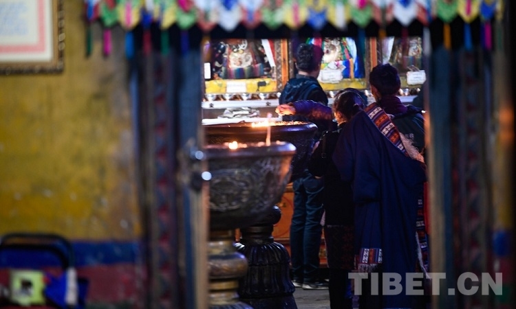 图为八廓街一寺庙点灯的信教群众 摄影:王媛媛
