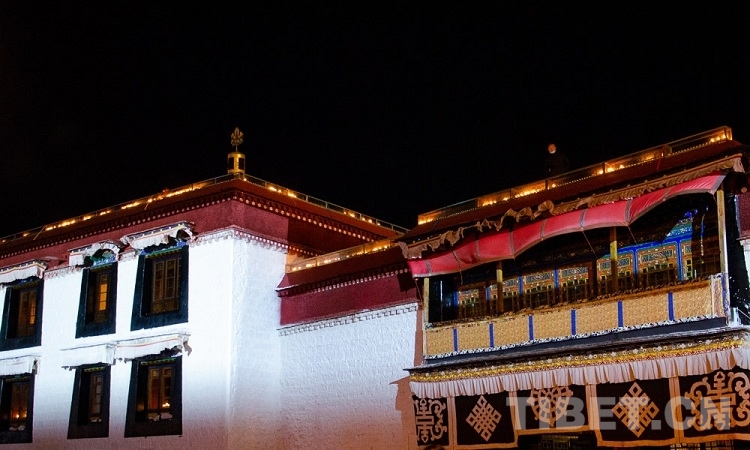 图为大昭寺房顶点燃的酥油灯 摄影:赵耀