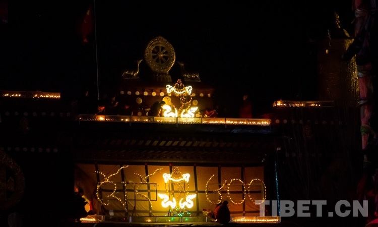 中国西藏网讯 12月21日,藏历十月二十五日,西藏迎来一年一度的传统宗教纪念日——“燃灯日”。与往年不同的是,今年藏历十月二十五日是藏传佛教格鲁派创始人宗喀巴大师圆寂600周年。为了缅怀宗喀巴大师并为众生祈福,大昭寺、甘丹寺、扎什伦布寺等格鲁派寺庙除了像往常一样点燃盏盏酥油灯外,还点亮起“600”字样的明灯。在明灯照耀下,寺庙以及僧俗信教群众的家中,闪烁的酥油灯光连成闪烁的灯河,甚是壮观。(中国西藏网 记者/赵耀 王媛媛)
