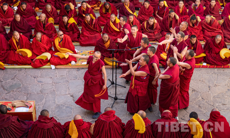 当日,在立宗答辩活动中,考僧们围绕陪考僧人所提有关五部经典方面的内容进行了精彩答辩。共有来自拉萨、日喀则、山南、昌都、那曲市、云南迪庆州有关寺庙的13名考僧获得了格西拉让巴学位。随后,西藏自治区政府领导向获得学位的考僧赠送五彩缎、干果、袈裟和礼金。