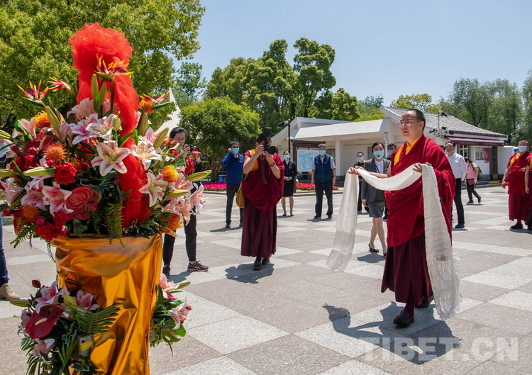 10日上午,班禅专程来到位于上海市青浦区练塘镇的陈云纪念馆,认真听取了陈云同志有关事迹,并向陈云铜像敬献哈达,追思陈云同志爱国忧民、为共产主义事业鞠躬尽瘁的伟大一生……