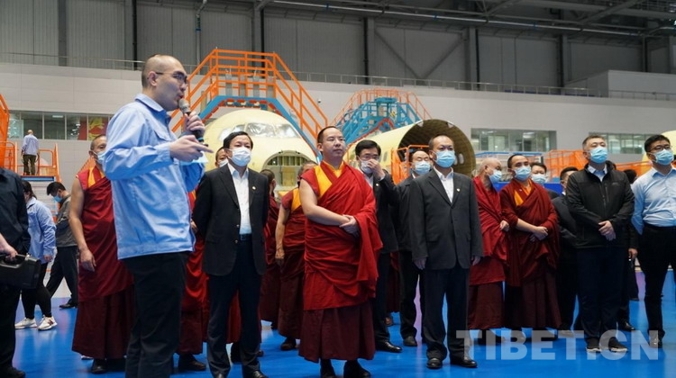 当日下午,班禅来到了中国商飞公司。2014年,习近平总书记曾到此考察,并体验了C919客机样机,提出“把大飞机搞上去”。7年过去了,如今成立13年的中国商飞公司,随着C919大型客机全球首单正式落地、ARJ21新支线客机投入商业运营5年、CR929远程宽体客机转入开工制造阶段,已走出一条中国民机产业创新发展之路。班禅调研了多个实操车间,登上最新的公务机进行参观,在观看完《习近平总书记亲切关怀大飞机事业纪录片》后,班禅祝愿我国自主研发的大飞机能乘风破浪,行稳致远。