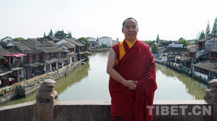 图为班禅在朱家角古镇留念