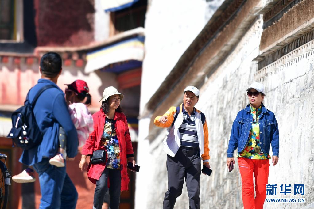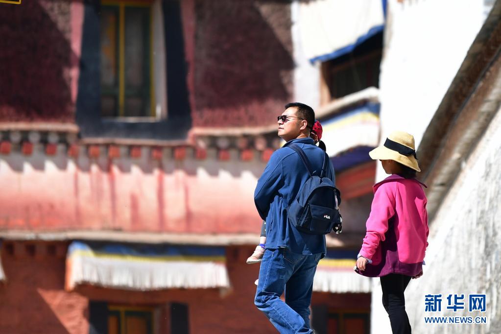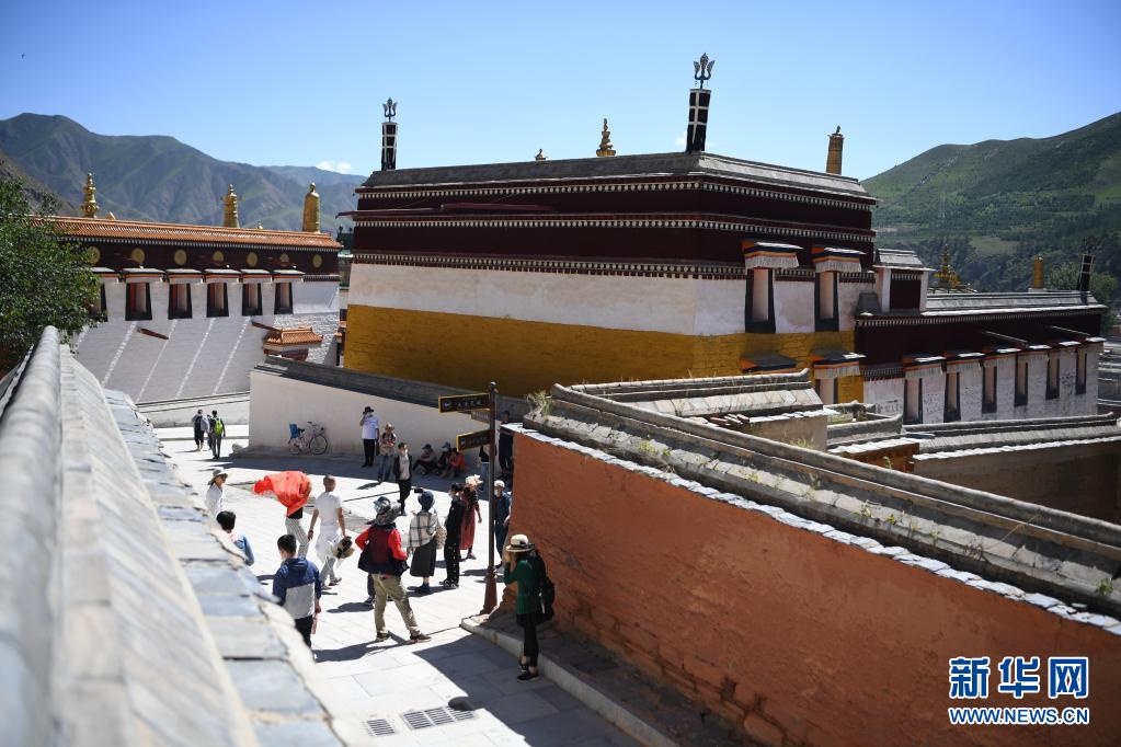 7月12日,游客在拉卜楞寺参观。新华社记者 陈斌 摄