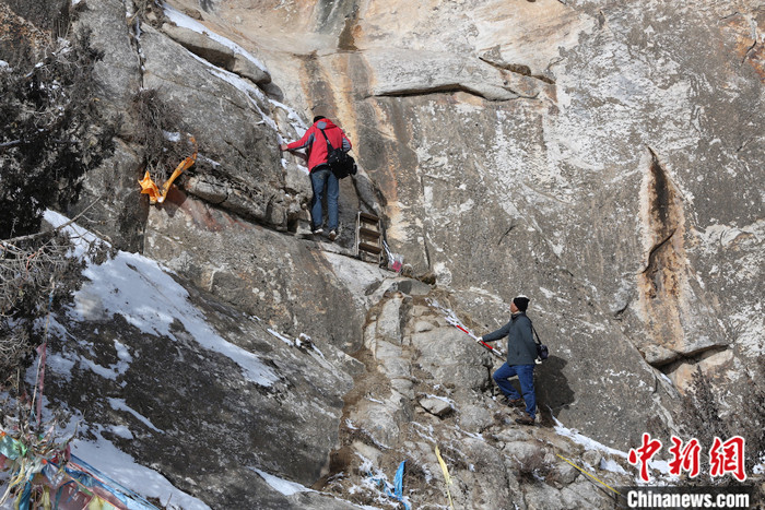 资料图为石窟寺调查组进行考察。 中新社发 石窟寺调查组 供图