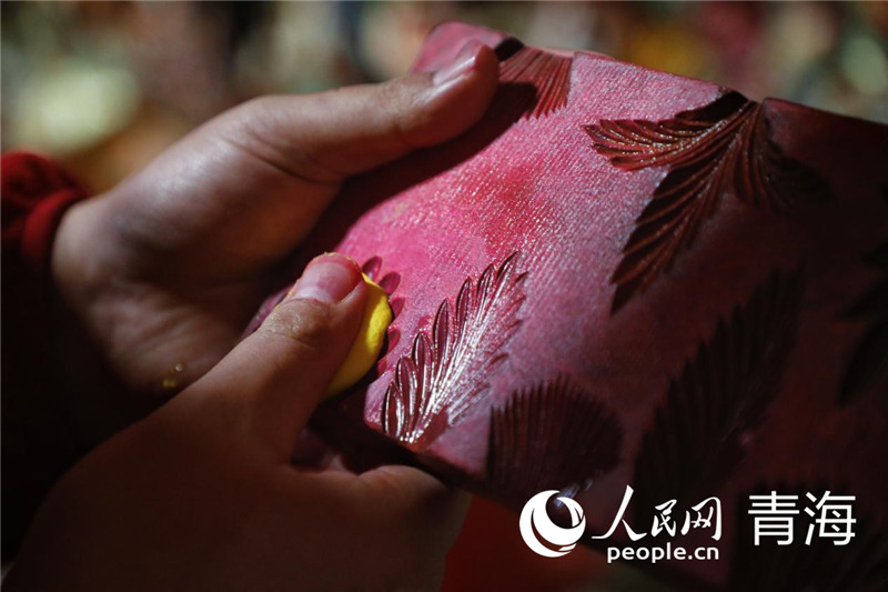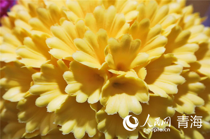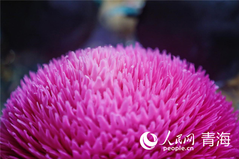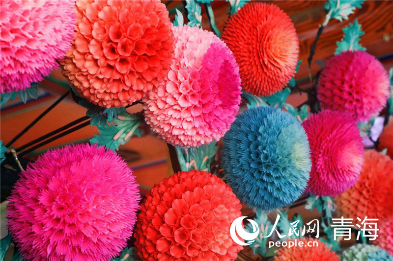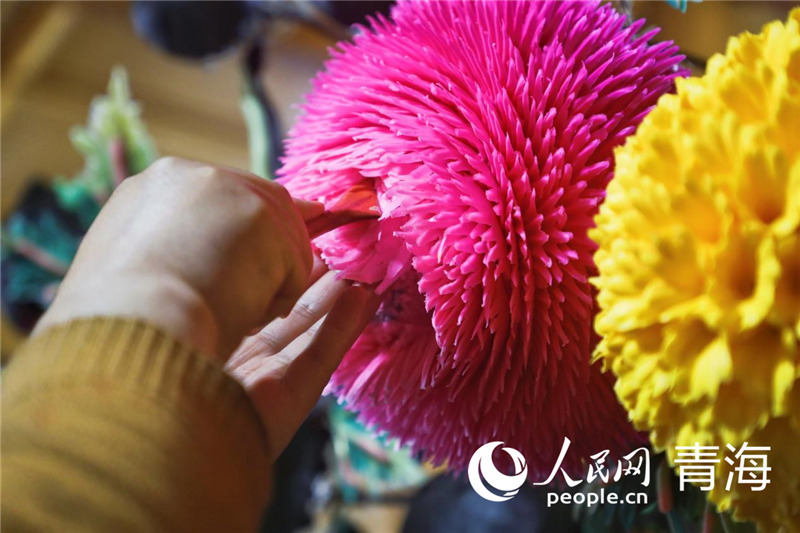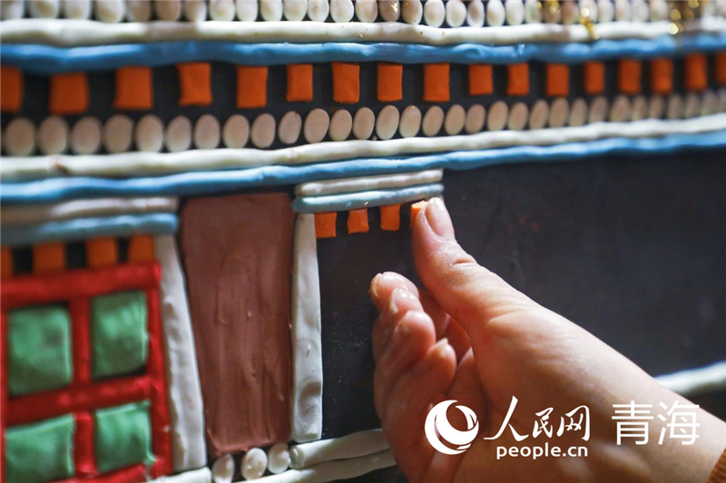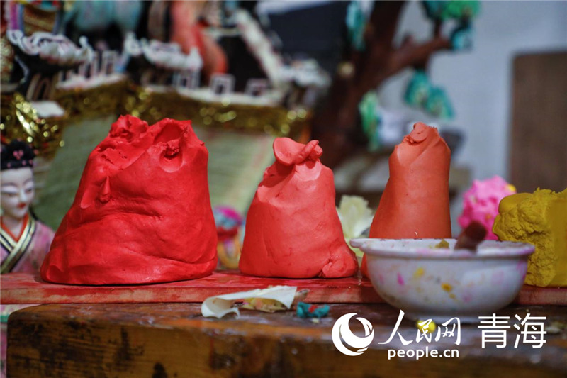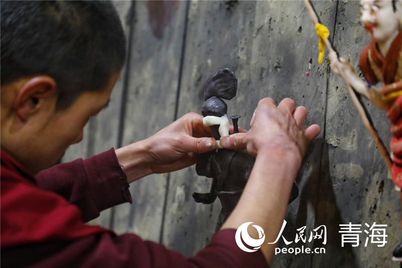艺僧正在制作酥油花。人民网 张皓芃 摄