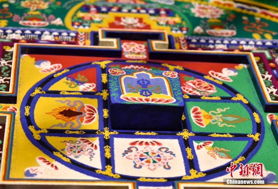 图为功德林寺完成绘制沙画坛城。 中新社发 李林 摄