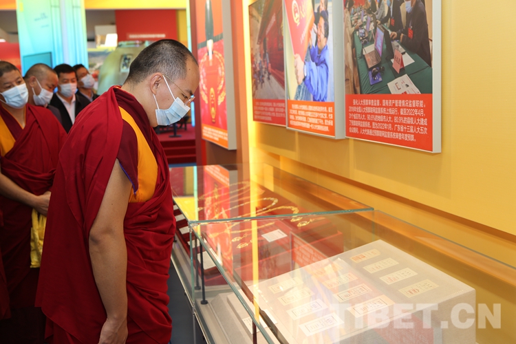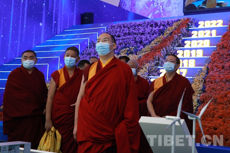图为班禅在“奋进新时代”主题成就展参观 摄影:陈浩力