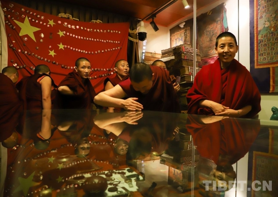 “中华民族一家亲 同心共筑中国梦”“遵行四条标准、争做先进僧尼”……走进林芝市民族团结“同心颂”示范点——尼池拉康民族团结系列馆,一幅幅以笔抒怀的书法作品表达着僧尼们对民族团结的珍视,一件件文化交融实物讲述着中华民族水乳交融的故事。参观过程中学员们更加坚定了听党话、感党恩、跟党走的信心和决心,进一步筑牢了维护祖国统一和民族团结的坚固思想长城。